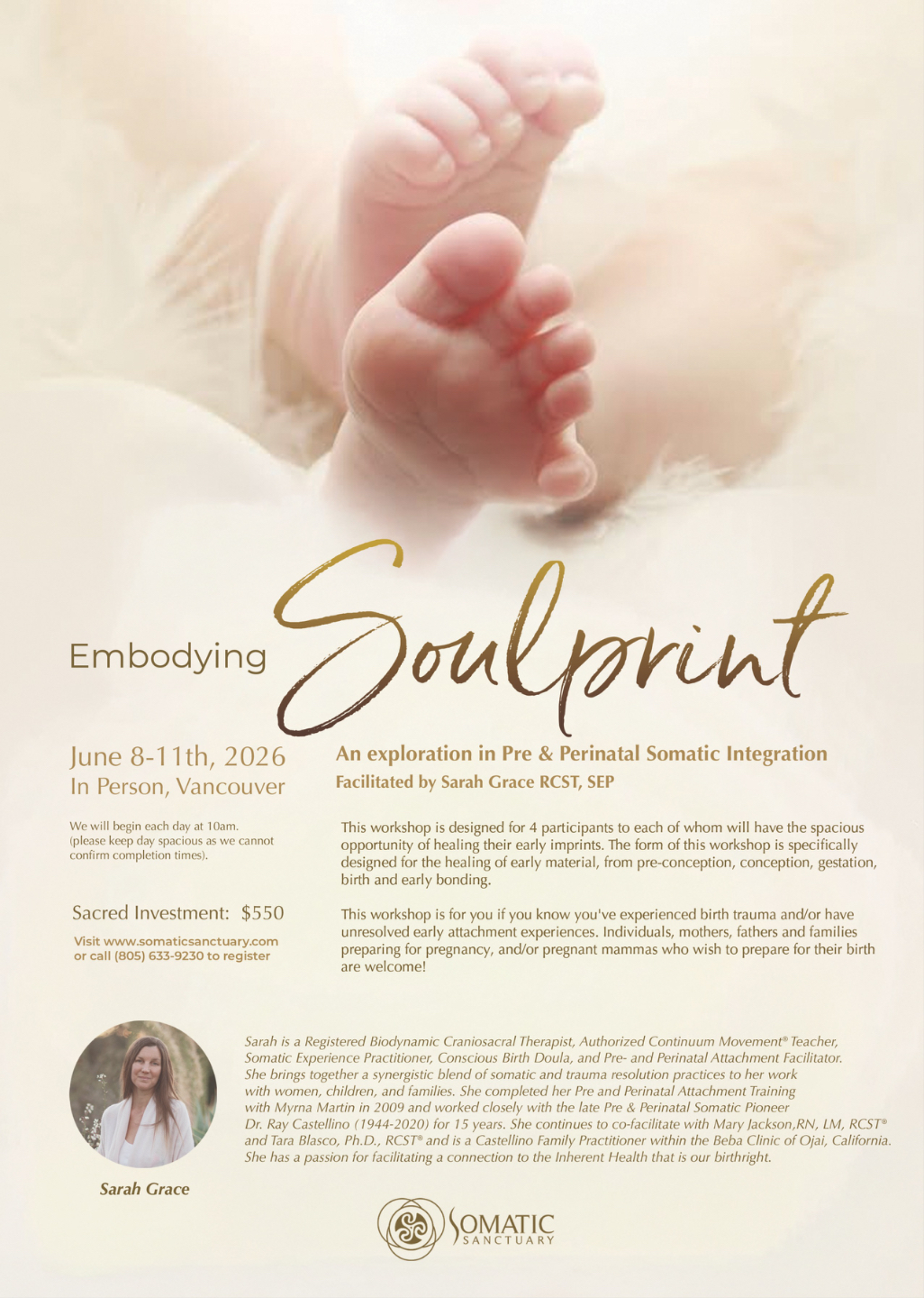 An exploration in Pre & Perinatal Somatic Integration Facilitated by Sarah Grace RCST, SEP